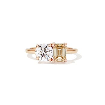 FirstMadam сплошное 18-каратное золото с лабораторными бриллиантами принцессы и круглым бриллиантовым кольцом