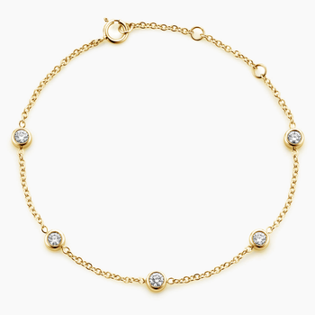 FirstMadam basit tasarım katı 14K gerçek altın beş elmas çerçeve bilezik