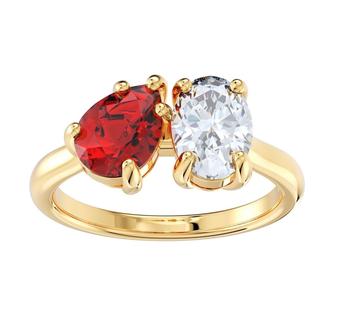 Laboratuar prenses elmas ve yuvarlak elmas yüzük ile FirstMadam katı 18K altın